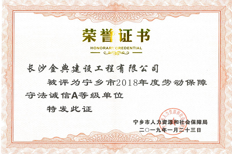 金典建設(shè)資質(zhì)榮譽(yù)