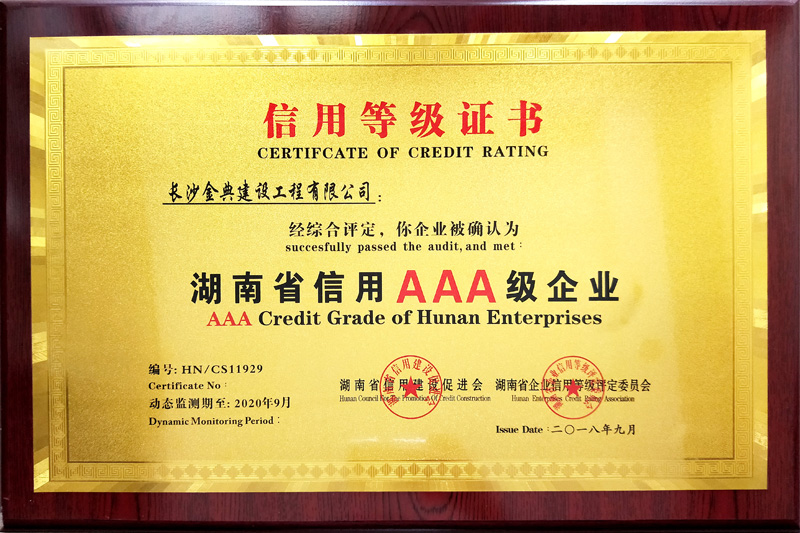 公司十分注重品牌和形象。堅(jiān)守質(zhì)量塑品牌、信譽(yù)樹形象,管理出效益的原則。堅(jiān)持“質(zhì)量是企業(yè)的生命”的理念,引領(lǐng)著數(shù)十支作風(fēng)強(qiáng)硬、技術(shù)過(guò)硬、經(jīng)驗(yàn)豐富、敢打硬仗的各種專業(yè)施工隊(duì)伍, 在激烈的市場(chǎng)競(jìng)爭(zhēng)中,奠定了“專業(yè)體現(xiàn)價(jià)值,細(xì)節(jié)成就品質(zhì)”的企業(yè)形象。先后榮獲湖南省“湖南誠(chéng)信企業(yè)”、“質(zhì)量?jī)?yōu)勝企業(yè)”、“安全生產(chǎn)先進(jìn)企業(yè)”、 “縣施工質(zhì)量安全標(biāo)準(zhǔn)化示范工地”等稱號(hào);2013至2017年連續(xù)五年被長(zhǎng)沙市建筑業(yè)協(xié)會(huì)評(píng)為“建筑業(yè)施工總承包先進(jìn)企業(yè)”,?2014年至2016年連續(xù)三年被評(píng)為“長(zhǎng)沙市建筑業(yè)AAA信用企業(yè)”。??